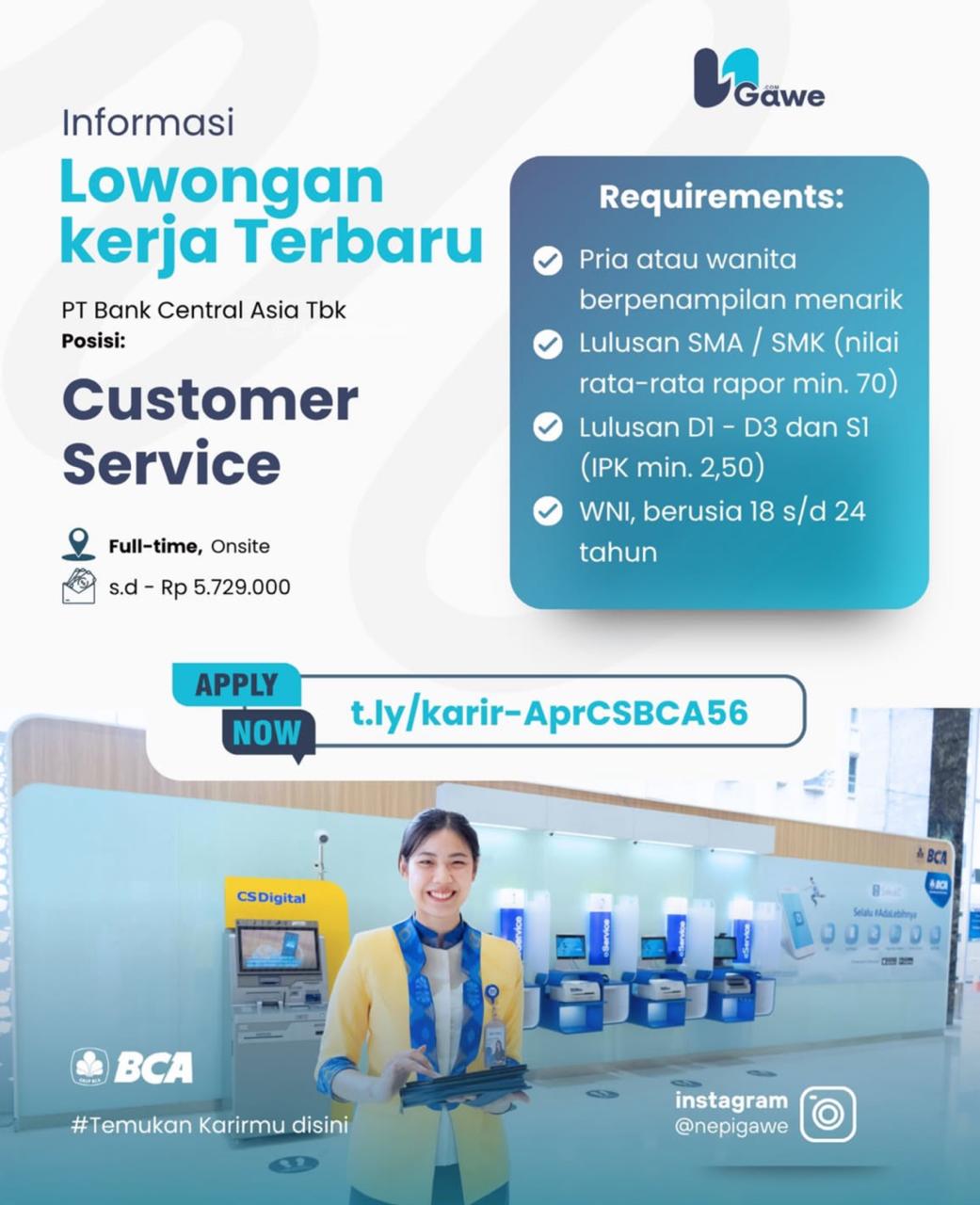 Lowongan Kerja Customer Service – BCA