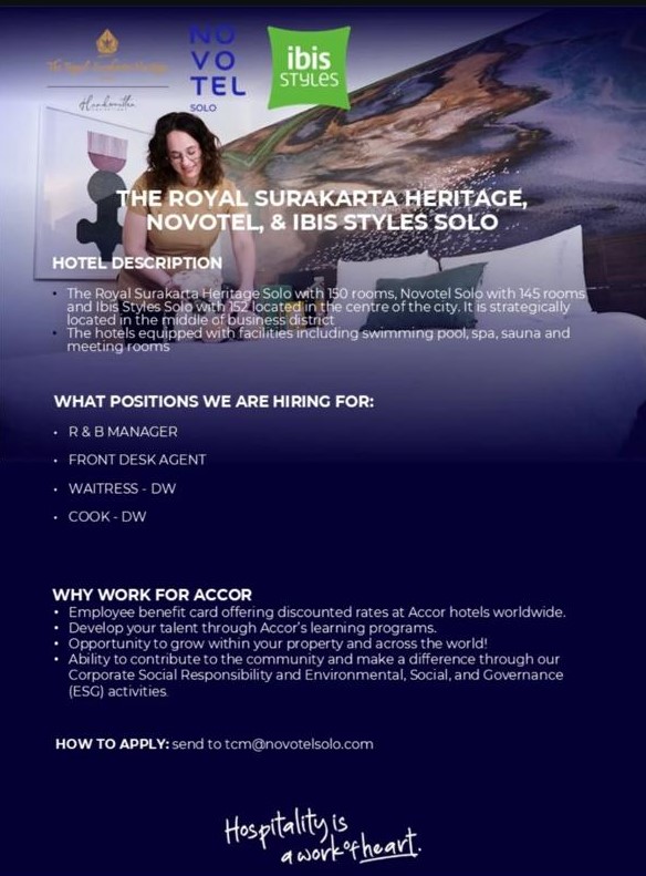 Cara Melamar: Kirimkan lamaran Anda ke email: tcm@novotelsolo.com